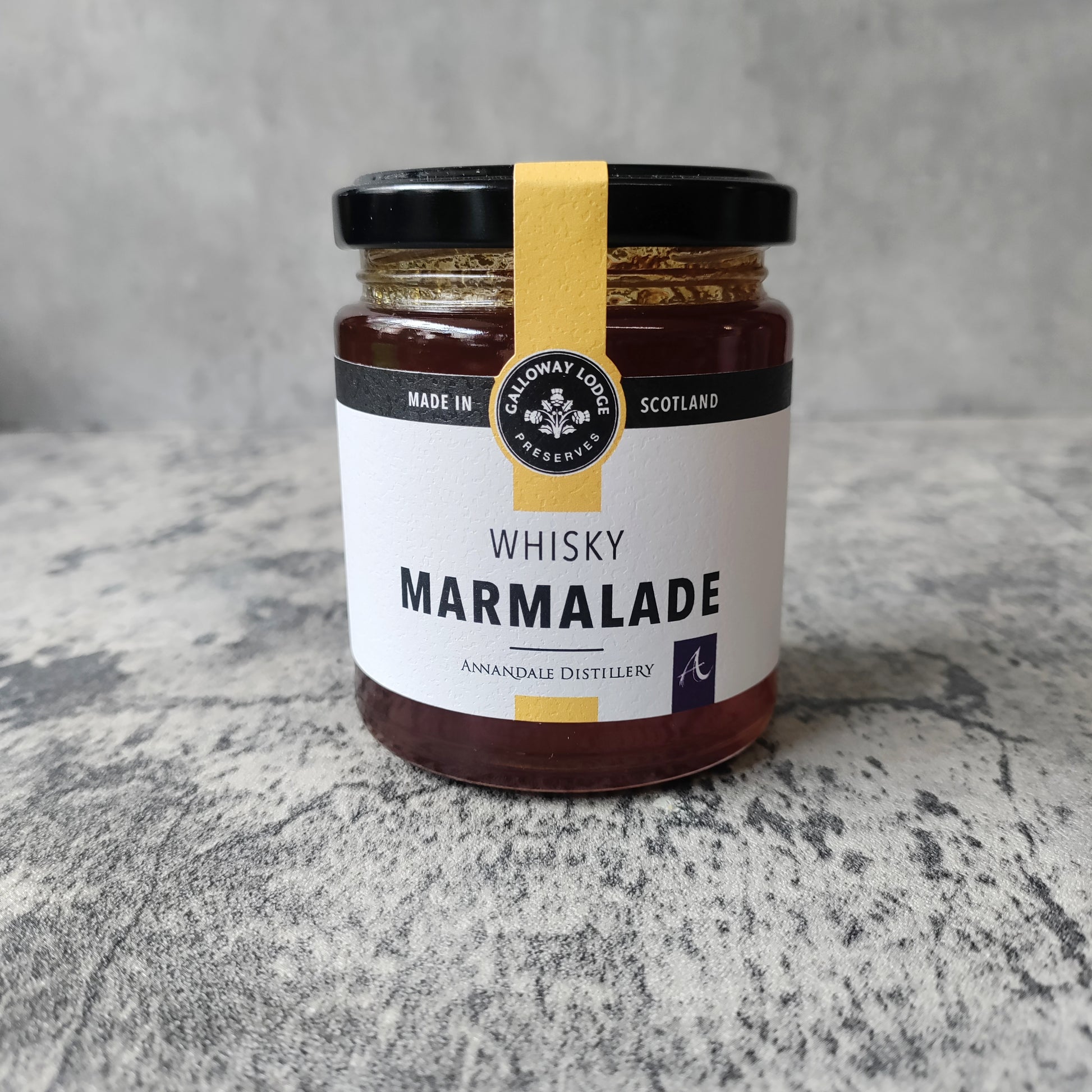 Galloway Whisky Marmalade is made with the wonderful Annandale Distillery whisky. Made with Scottish Malt Whisky that they hand pour at the end of the cooking process to ensure that no more of this magical spirit is lost to the angels.